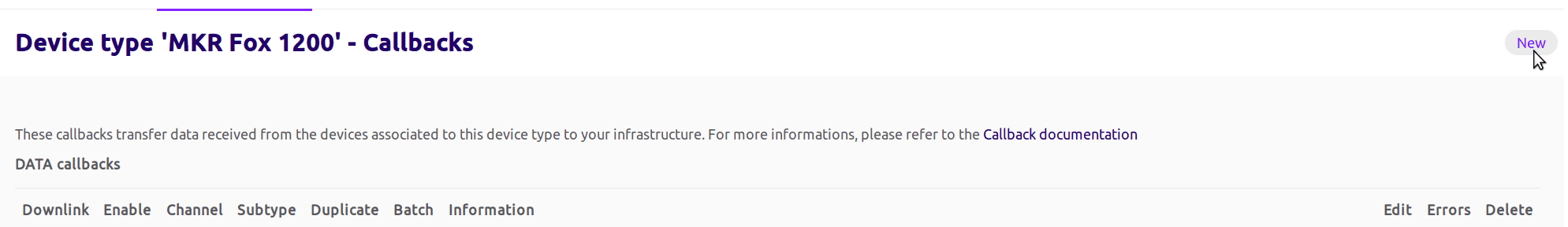 Once logged in you have to navigate to callbacks and click on new (top right corner)