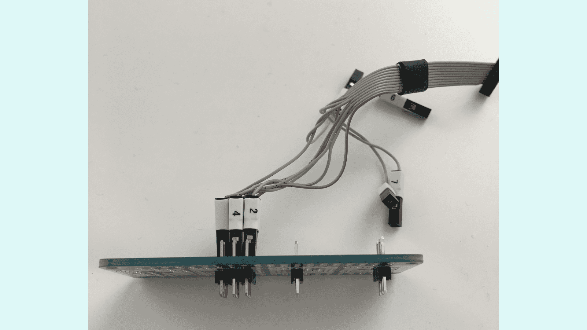 Besides not requiring any soldering, with this method the MKR Proto Shield remains fully reusable. Now you can connect the mini-squid cable to the straight headers in the shield.